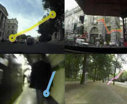 »In Transit« erforscht die Wahrnehmung von Raum und Zeit in der Stadt mithilfe einer zeitbasierten Kartorgraphie des öffentlichen Nahverkehrs. Die Karte geben Pinskys eigene Transitzeiten durch die Londoner City wider, indem sie weniger die räumlichen Koordinaten als die Zeitdauer spiegeln. Stationen oder Haltestellen werden als Knotenpunkte abgebildet, wo verschiedene Karten sich überlappen und kreuzen.